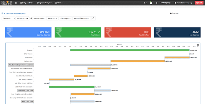 Easily analyse corporate performance using key performance indicators, trends, drill-downs & variances. Get alerted on misses and take timely action. Use existing library of KPI's or configure custom KPI's on demand.