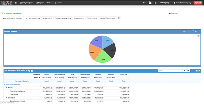 Empowers to run performance analytics across multi-hierarchy of segments like a business line, geography, product line, projects or service line.